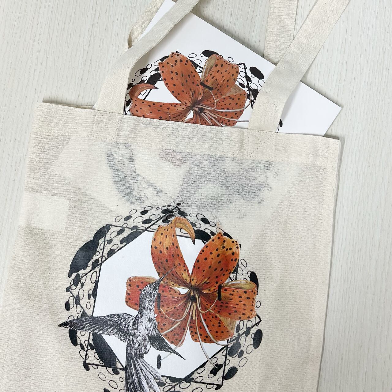 7インチレコードがすっぽり入る、綿100%のシンプルなトートバッグ。